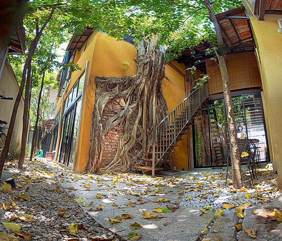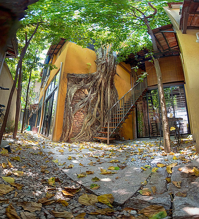 Spices Hotel once 4 units of derelict shophouses was about to be converted to yet another swiflets’ house until the current owners, an Architect himself and his wife a Town Planner and Landscape Architect, drawn by the uniqueness of old Bodhi tree which grew onto the party wall of one of the units that were completely ruined by fire many years back decided to acquire them. Their intention was to combine the 4 units each with a lot size of only 500 sqft into their dream bohemian residence cum work place within the living Cultural Enclave of George Town.