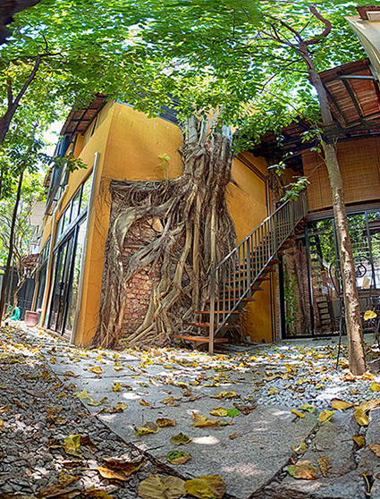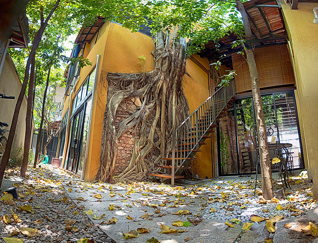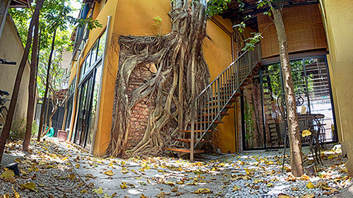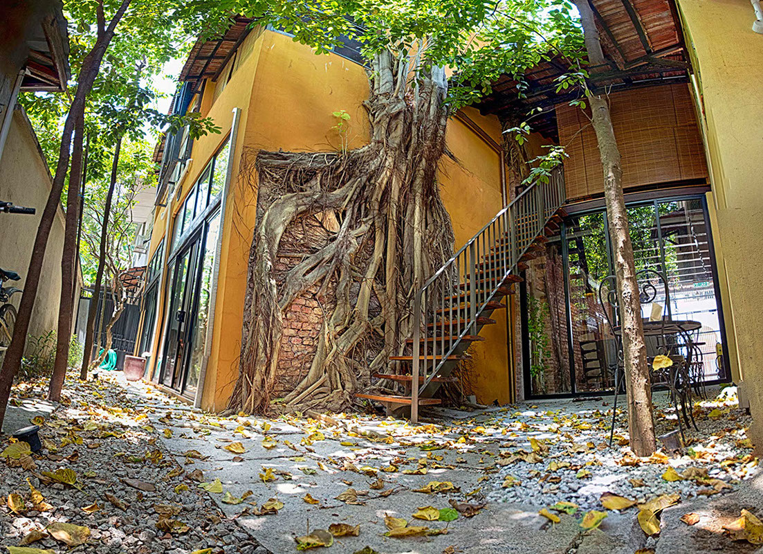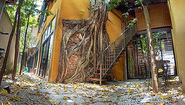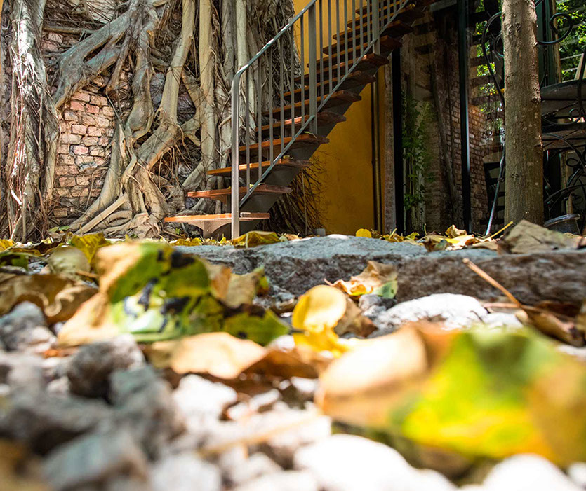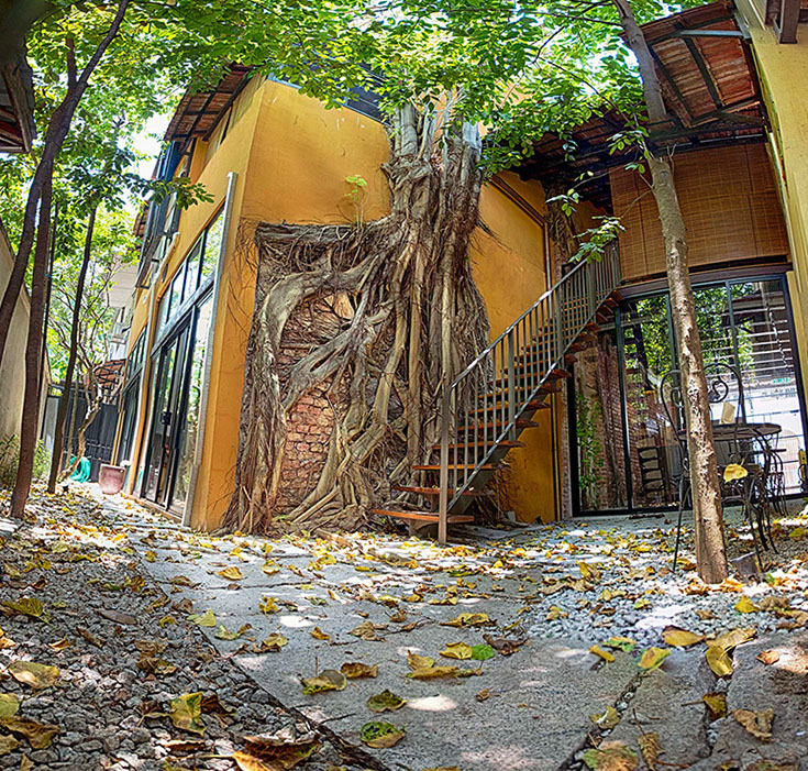 Spices Hotel once 4 units of derelict shophouses was about to be converted to yet another swiflets’ house until the current owners, an Architect himself and his wife a Town Planner and Landscape Architect, drawn by the uniqueness of old Bodhi tree which grew onto the party wall of one of the units that were completely ruined by fire many years back decided to acquire them. Their intention was to combine the 4 units each with a lot size of only 500 sqft into their dream bohemian residence cum work place within the living Cultural Enclave of George Town.